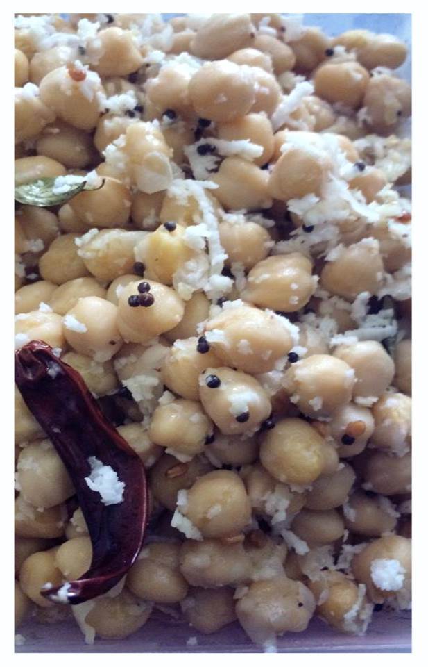 My favorite recipe right now is a South Indian dish called “Shundal”. It’s basically chick peas with a sprinkling of coconut and a ‘tadka’ of mustard, curry leaves a red chili and some hing. Very basic, but great source of protein!