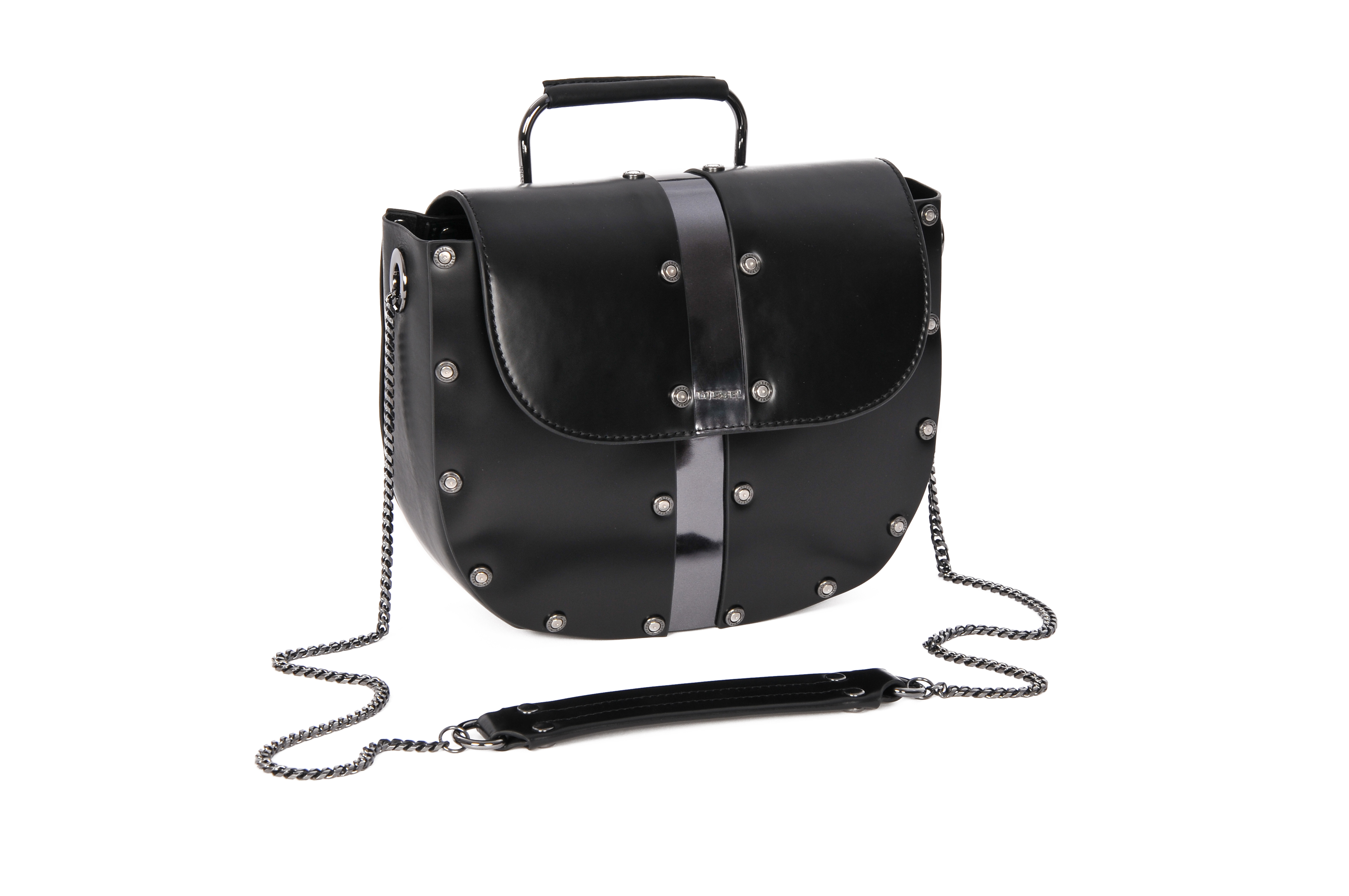 Black leather accessories by Diesel. Bag AED 1,975 and Boots AED 1,599