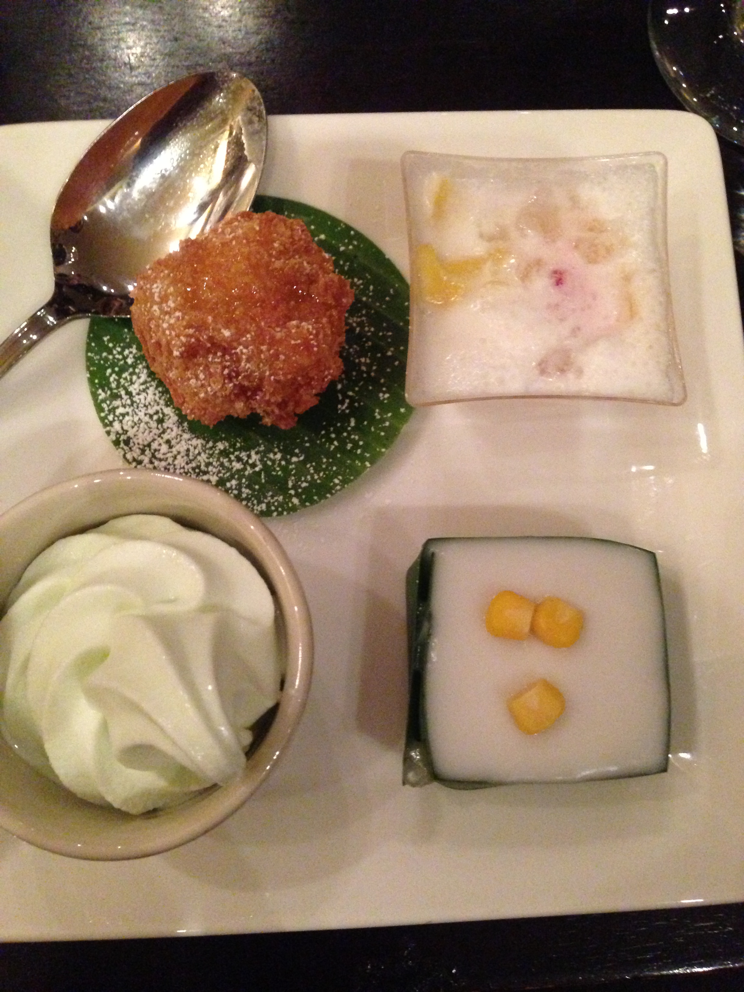 My sweet-tooth was spoilt to bits with the assorted Thai dessert platter. From the array of sweet treats, I have to say I enjoyed the Tako Haew best. Tako Haew is a traditional Thai coconut custard with sago and water chestnut in the mix.