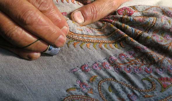 Shahtoosh has a characteristic dull gold sheen, and is rarely dyed or heavily embroidered.