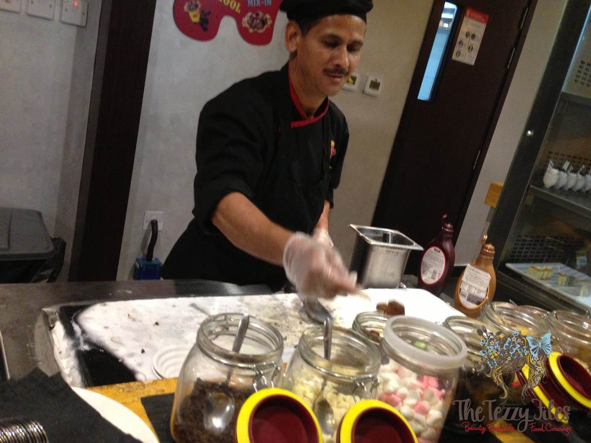 They also have their very own cold-stone for mixing and mashing up ice-cream flavors with all the lollies, dried fruits and nuts you can wish for.