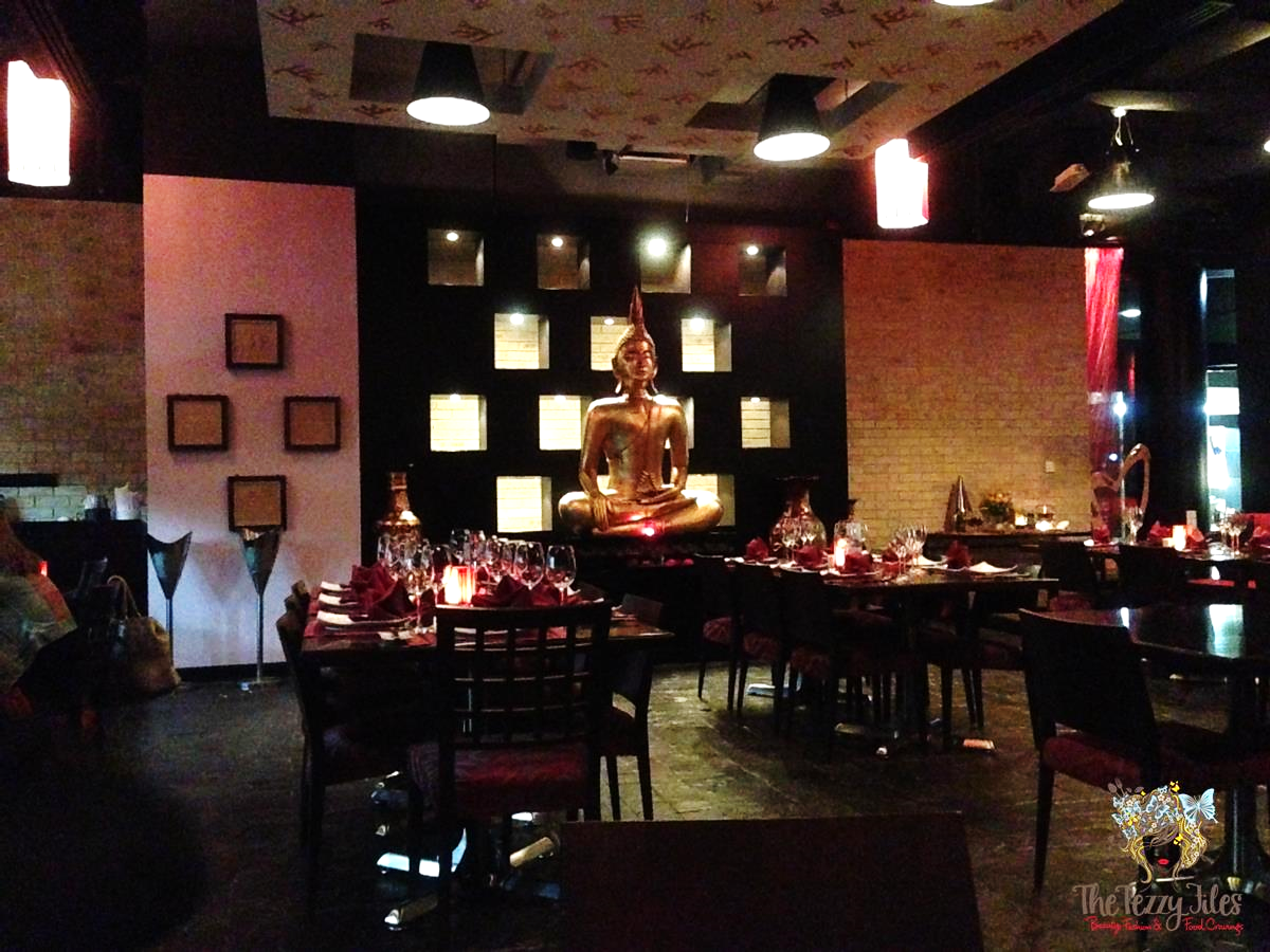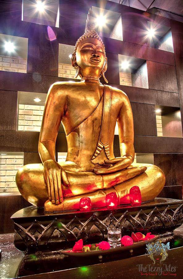 The interiors are sleek and modern with a color palette inspired by the exotic East. Tastefully dim-lit, the restaurant is dominated by a towering golden Thai budha after which the restaurant takes its name.