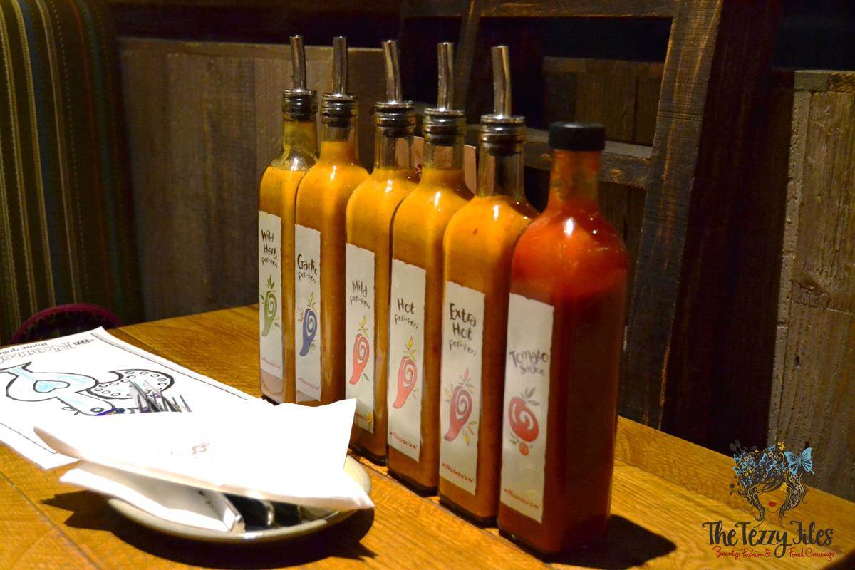For ‘Appeteasers’, we had the Peri Peri Hummus. This is Nando’s take on a classic hummus, and the heat of the Peri Peri is as subdued as the pretty pale pink the hummus takes on. The texture of the Peri Peri Hummus is coarser than the plain, well-whipped traditional hummus it is accompanied with, and it has a robust near-smoky flavor.