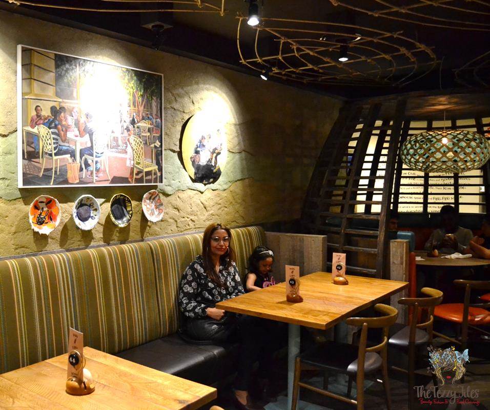 The Al Qasba branch has a cozy rustic vibe with its earthy walls, bare wooden accents and colorful Portuguese artifacts.