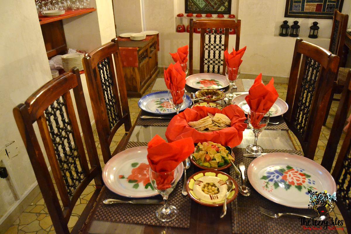 barjeel al arab dinner reviewNotice the plates on the table? They are the vintage-style steel painted plates. I asked the staff where these can be bought, and they tell me everything used in the property has been sourced locally from the markets around Deira.