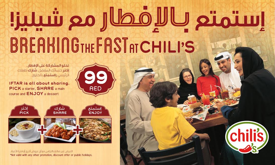 Chili’s, the iconic Tex-Mex chain, is a good idea for any occasion! Try out their set 3-course menu for Iftar for as low as AED 99 per person.