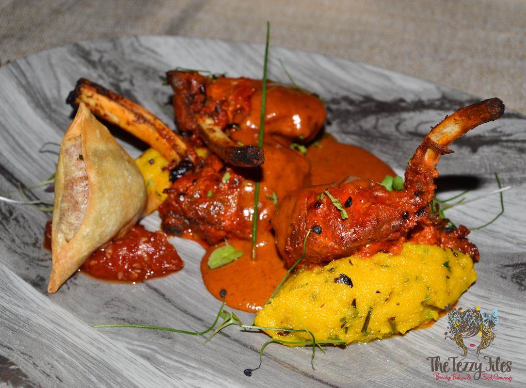 The star of this dish is the succulent pieces of lamb chops that have been accentuated with the zing of ginger. It is served on a puddle of Cinnamon Lamb Jus, a continuation of the meaty spiced goodness. On the side sits a scoop of Saffron Upma.