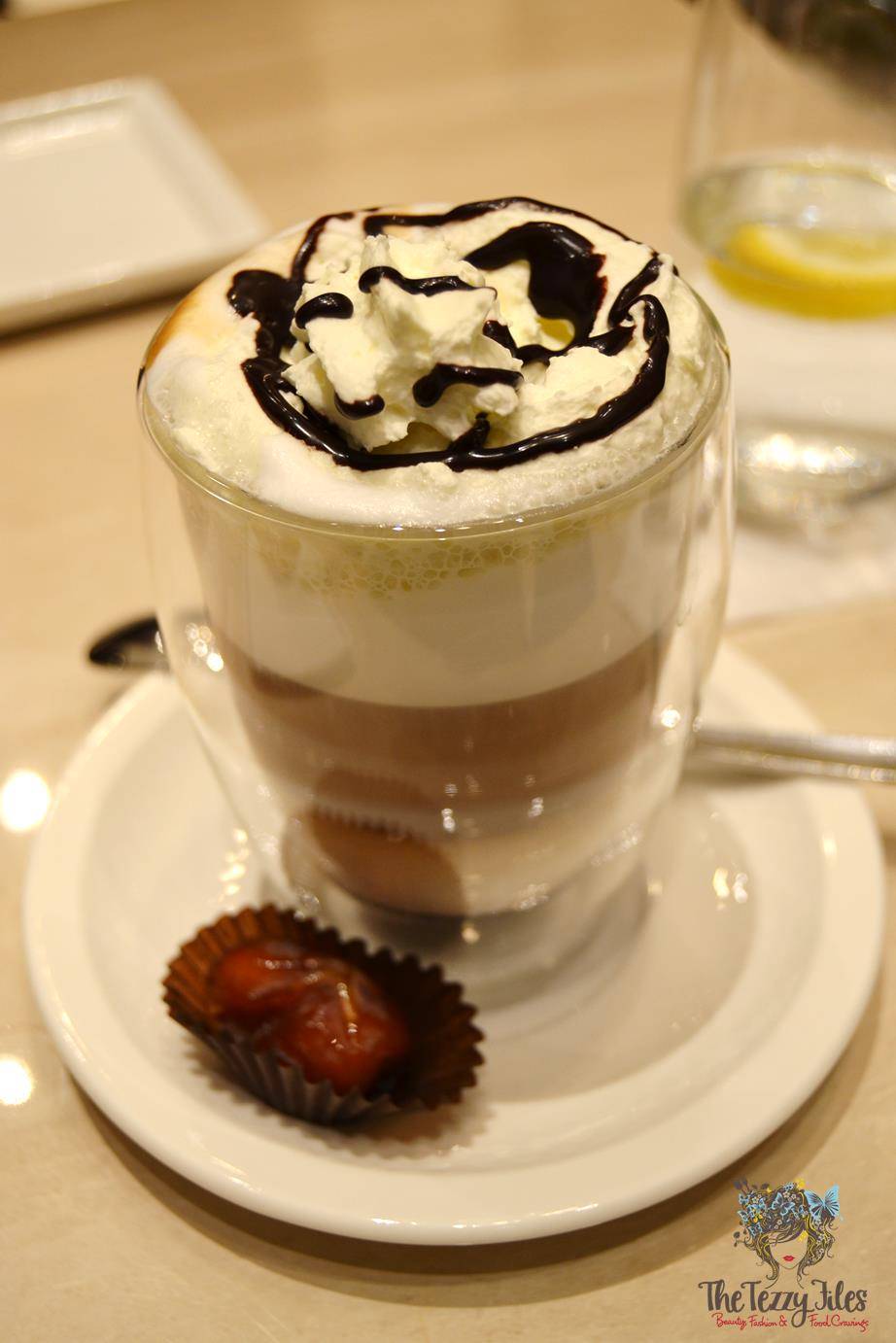We ended our meal at Cafe Bateel with Cafe Mocha (Milk Chocolate). This in’t your average cup of coffee, and is more akin to a naughty treat. This warm coffee has the richness of milk chocolate, and the frothy cream on top is garnished off with swirls of chocolate sauce. The very soft and sweet Bateel date accompanying the drink went beautifully well with the flavor of coffee.
