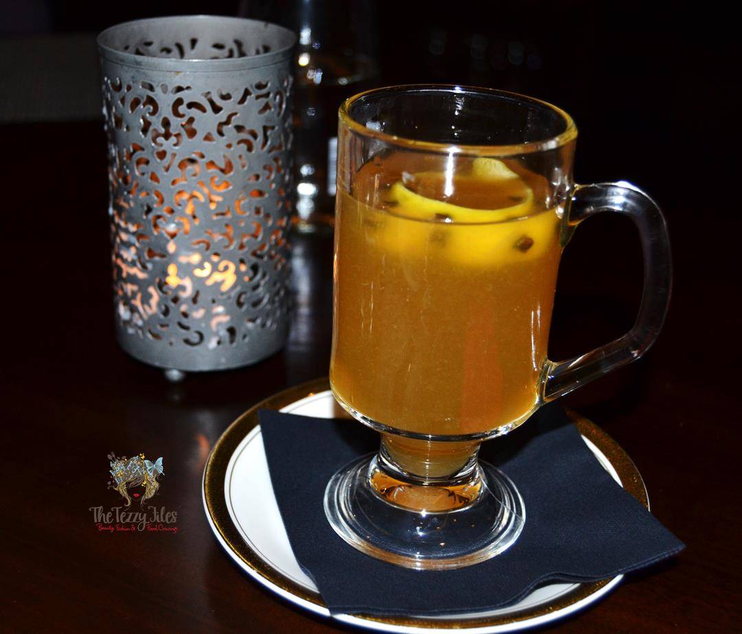 My husband had a bout of the flu that night, and the staff were considerate enough to create a special brandy mix for him. Here is his mug of warm brandy with honey, spiced up with the heat of cloves and the zestiness of lemon.