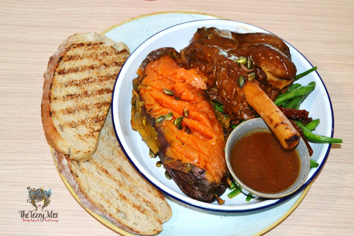 The Braised Lamb Shank was absolutely divine! Slow-cooked to perfection with meat falling off the bone, the lamb was accompanied with a beautiful combination of baked sweet potato (yes, Crumble Cafe really love their sweet potatoes!), crunchy roasted french beans and very moreish, tangy-salted sun-dried tomatoes. I’ve never had this rather Mediterranean mix of flavors with lamb, and it all worked together so beautifully well that the little pot of meaty gravy on the side went almost unnoticed!