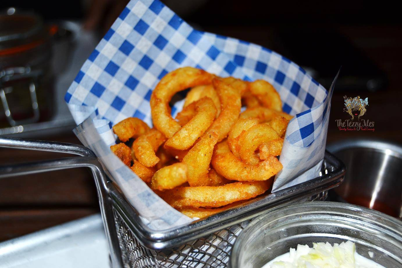 Of the two, I preferred the Curly Fries. Well seasoned with a crunch, my daughter enjoyed wearing these as temporary rings as she scoffed them down by the handful!