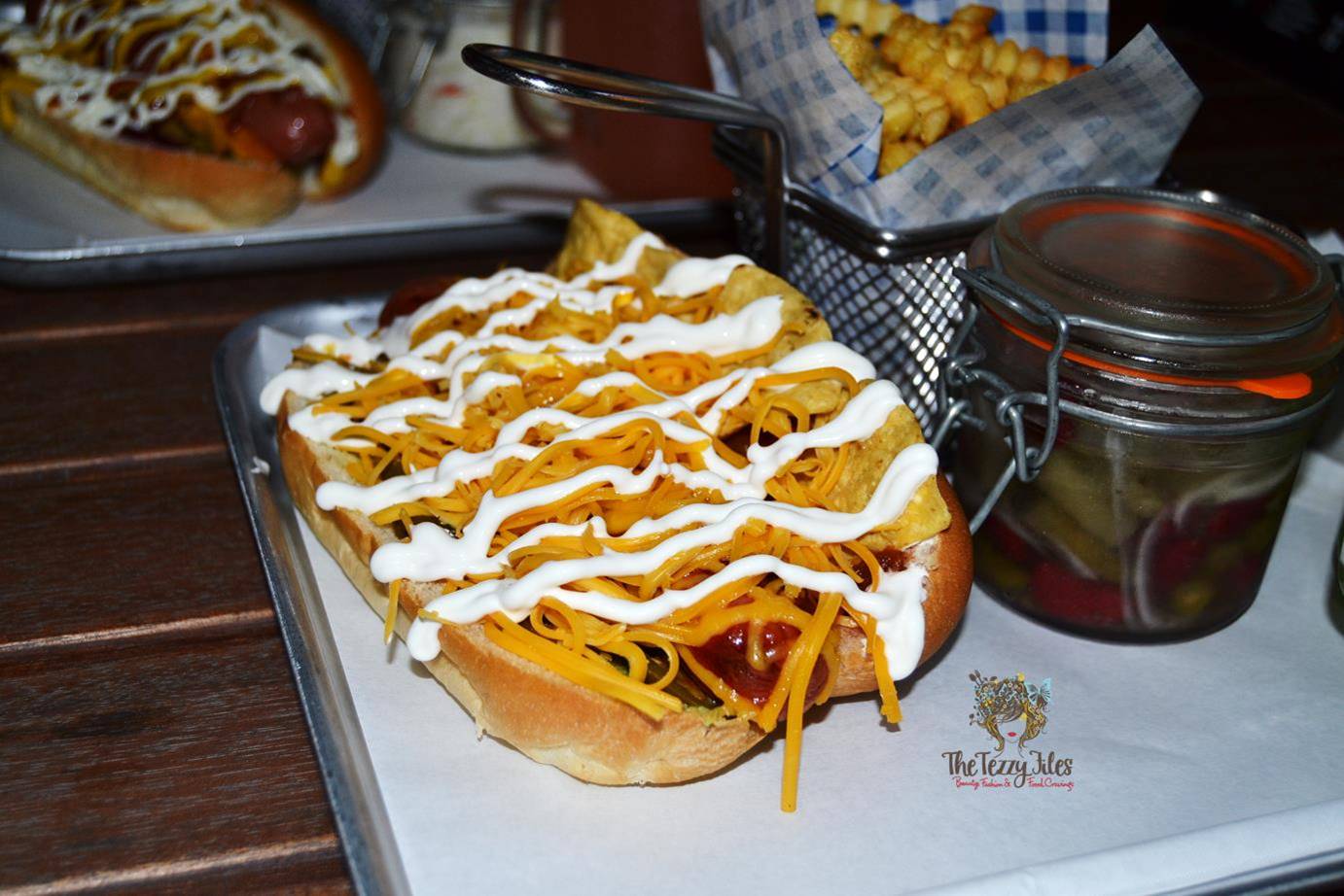 The Mexican is stuffed with all things taco and includes an indulgently creamy guacamole, a tangy-sweet salsa sauce, jalapenos, sour cream, nachos, and shredded cheddar cheese. It’s a monstrously festive munch, and when it hit the table, Hubby looked quizzical on how to dive into it. We used the forks and knives provided on the table, but it sure is messy business! The Mexican is indulgently creamy with a remix of Mexican favorites that work beautifully together, and that Angus hotdog is just so wonderfully meaty.