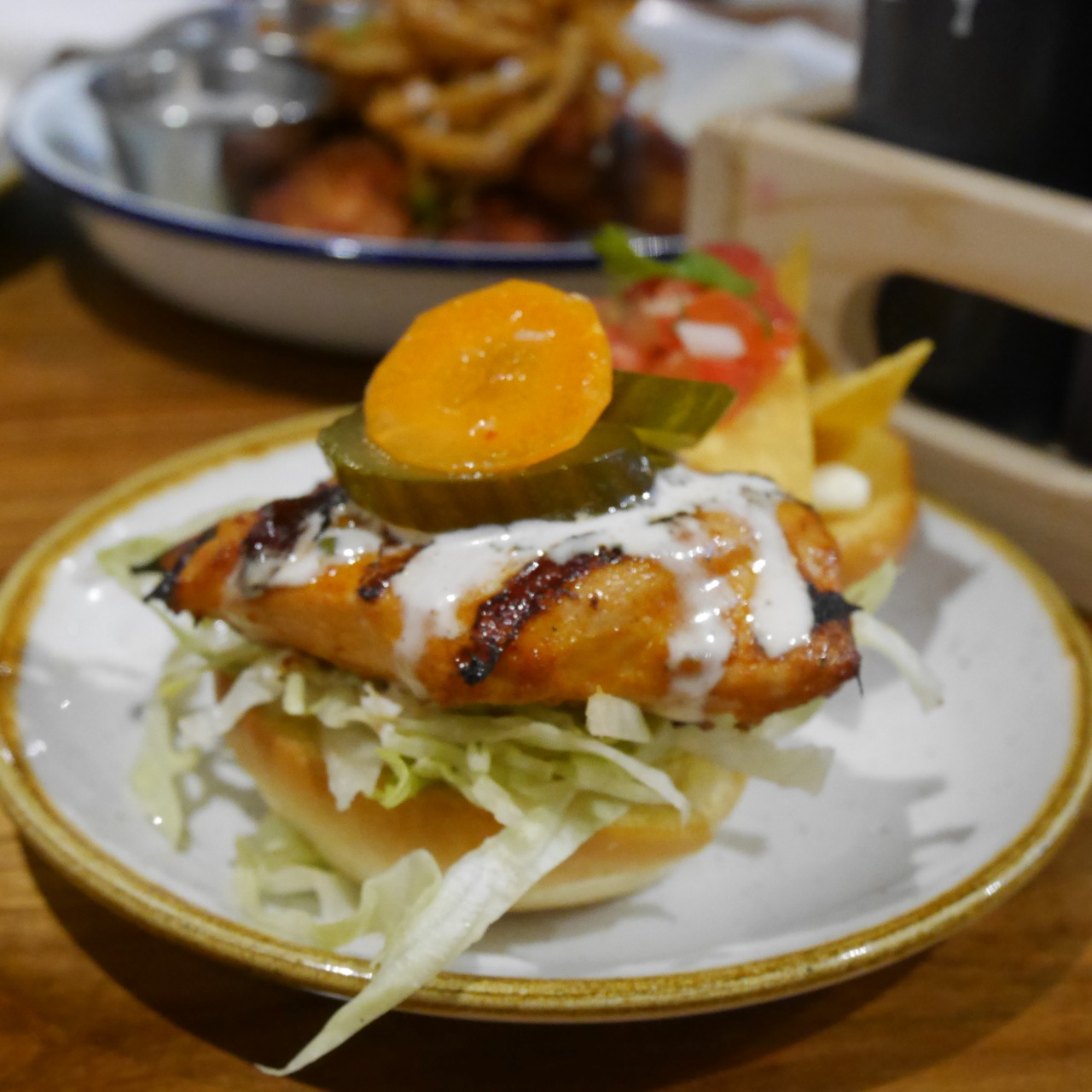 For our appetizers round we started off with ‘Almost Famous’, a half-bun topped with pulled chicken, BBQ sauce, smoked cheddar, slaw and pickle.