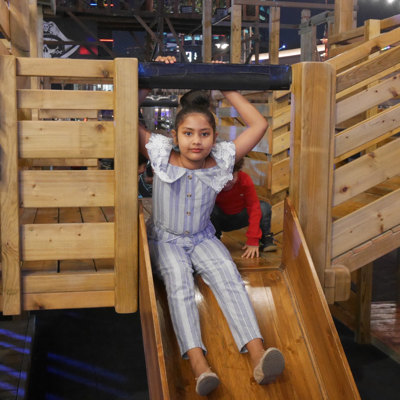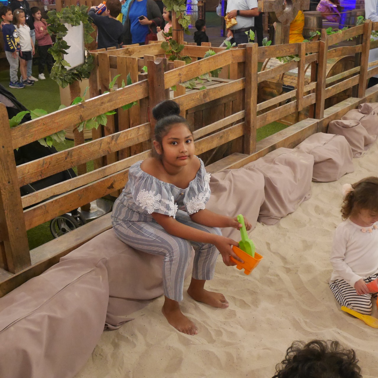 Farasha had fun playing on the slides and swings. She even had a go at the sand pit and the activities table where she got step by step instructions on how to make a pirate’s torch.