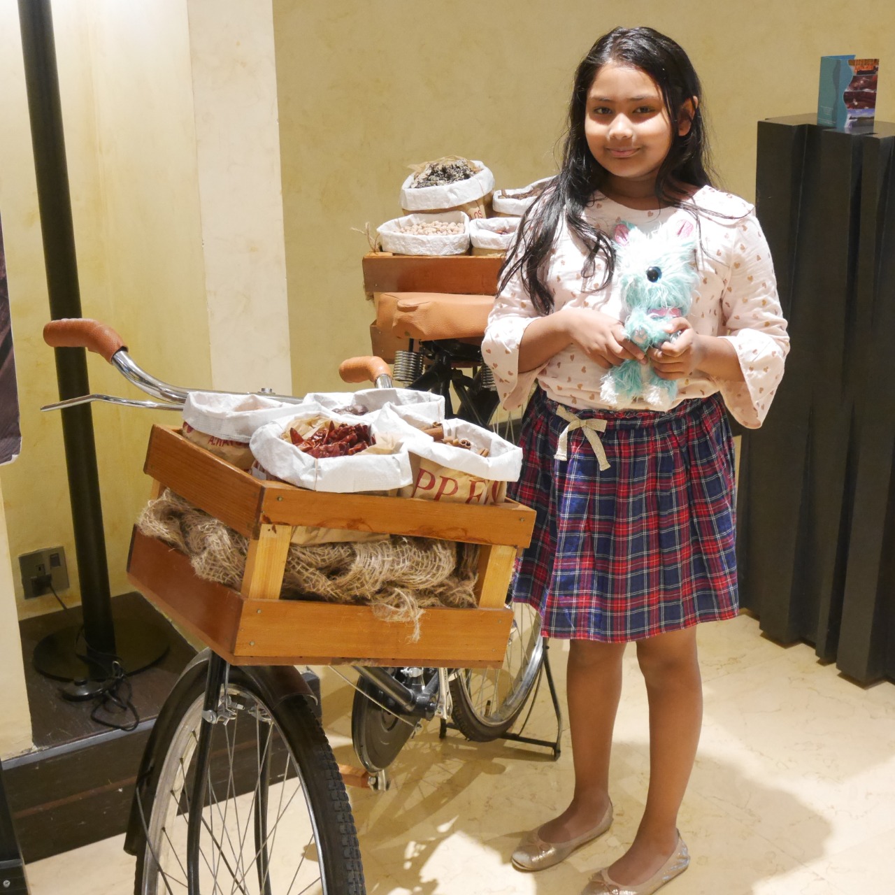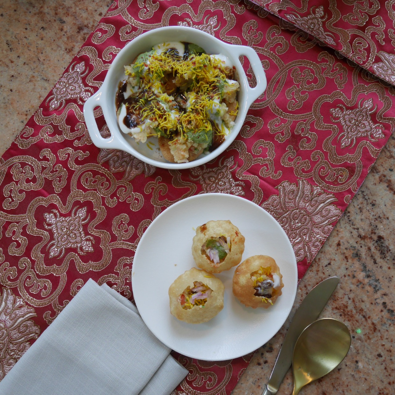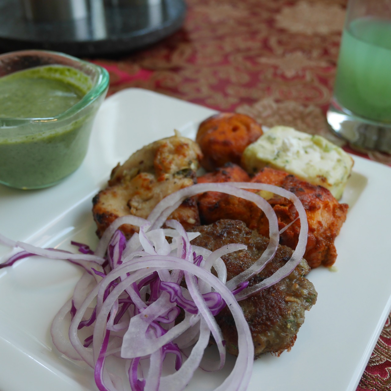 I loved how the entire restaurant had changed its theme so swiftly since breakfast! By lunch, there was a life-sized chaat crate at the entrance, the tables were lined with red and gold Indian napkins and the walls were bejeweled with exotic Rajasthani mannequins.