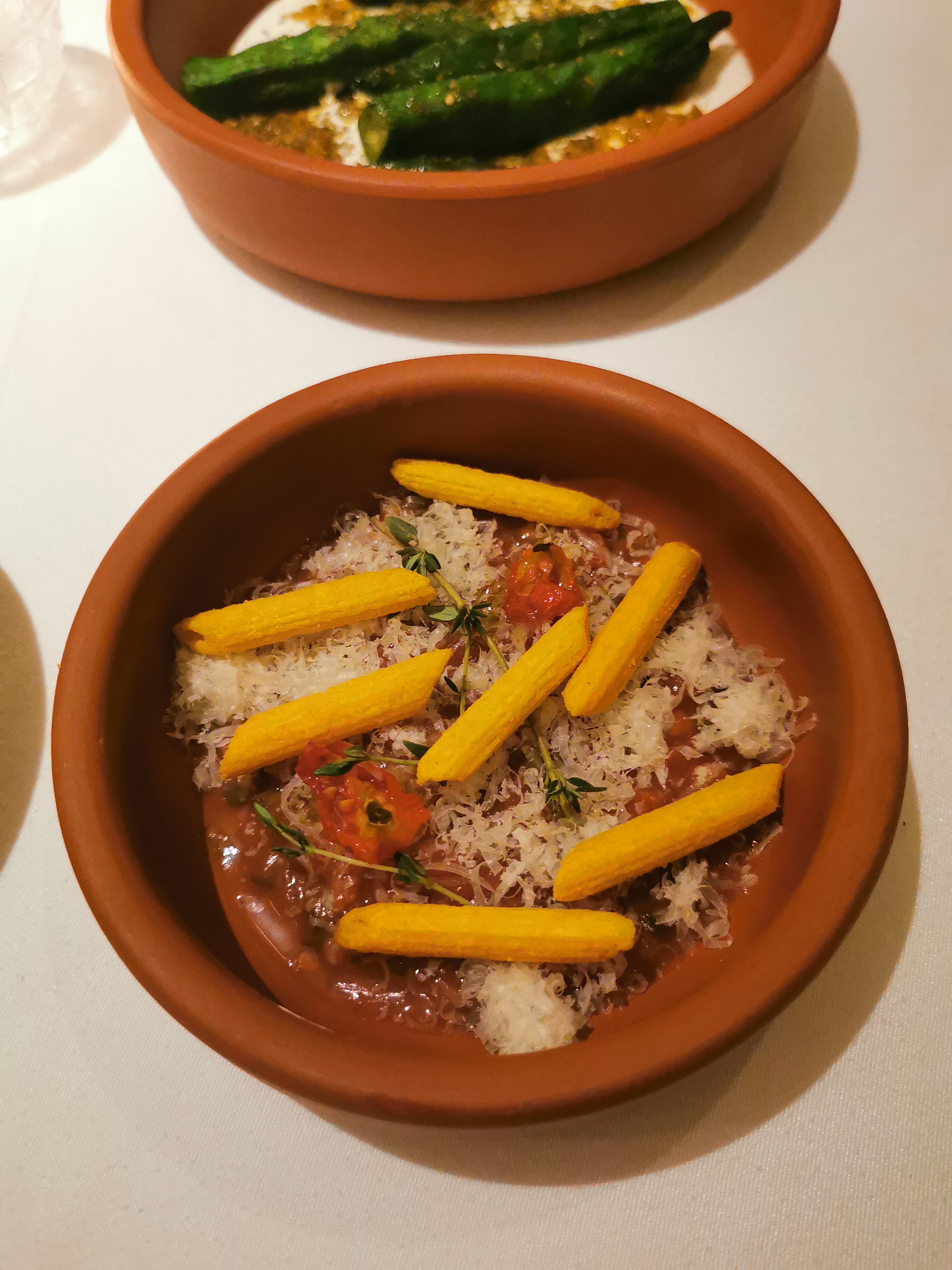 We broke our fast with what has become Tresind’s signature dates. These are no ordinary dates. They are stuffed with popping candy and wrapped in a clear edible wrapper. The popping sensation takes me back to my childhood every time.