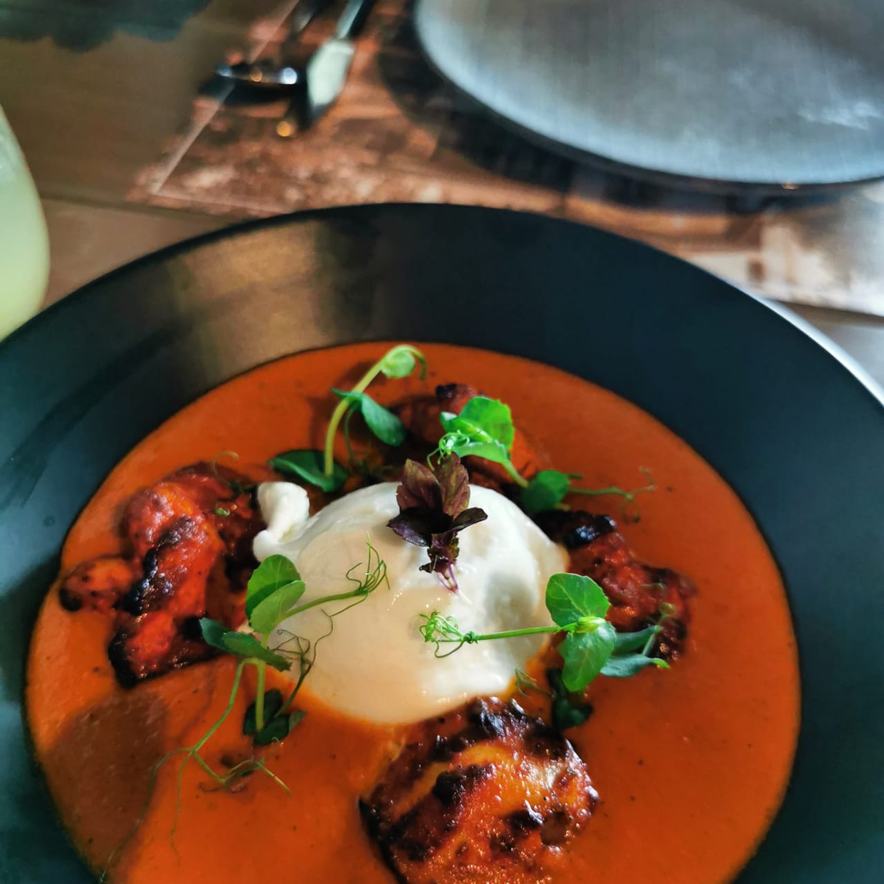Burrata Butter Chicken: If you thought the much-loved Butter Chicken couldn’t get any creamier, you have to order this one! The famous curry comes with a generously large dollop of Italian burrata cheese, and the staff encourage you to whip it into the warm curry. Its akin to a rich, warm cheese fondue and was the favorite at our table.