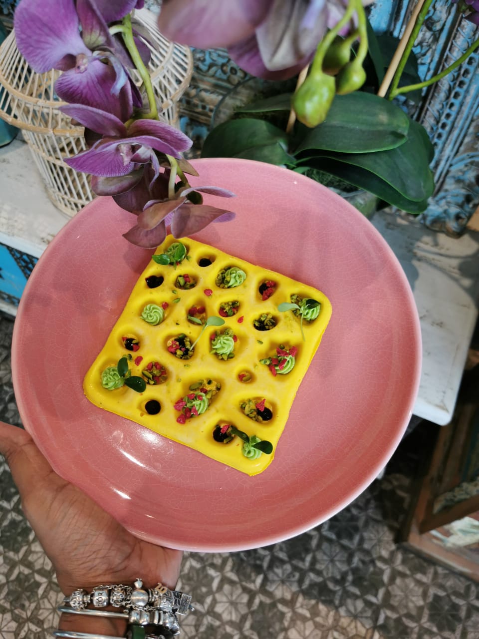 Mango Kulfi: The traditional Indian mango ice-cream takes on a brand-new avatar at Bombay Bungalow. Plated as a honeycomb-like maze and dotted with pistachio cream, nuts and dehydrated rose petals, this kulfi is a work of art and can easily be shared between two consenting adults.