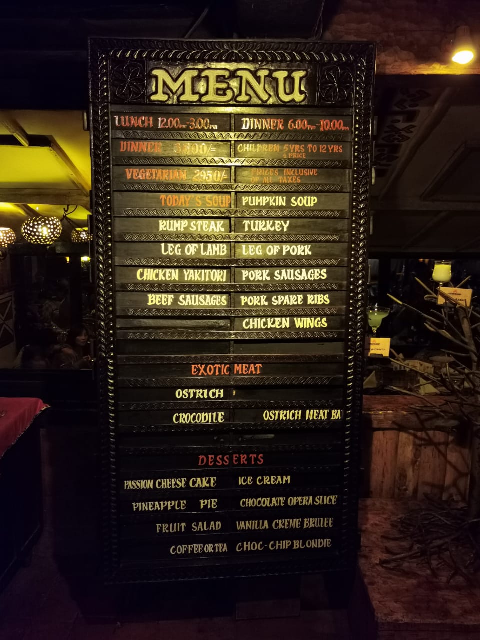 I ticked off a major foodie bucket-list item on our night in Nairobi. We had dinner at the much talked about Carnivore restaurant! We went for the epic ‘all you can eat’ meat feast where all kinds of game meat were being served.