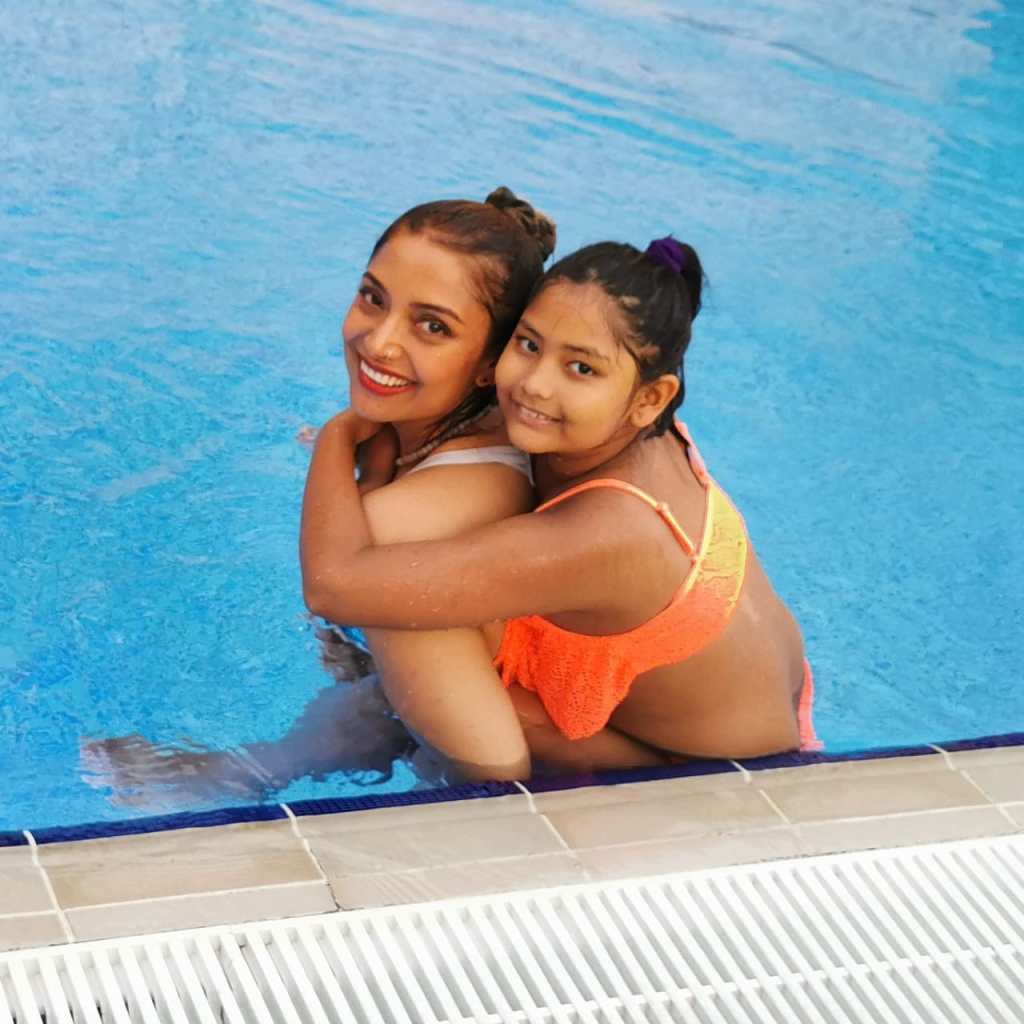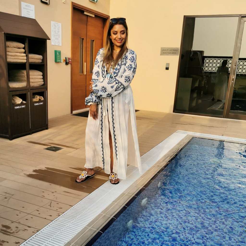 The pool is located on the 14th floor. When we got there, it was already occupied by a large group of young girls. The pool is not very large, and we found ourselves sitting in the baby area till the crowd reduced as the capacity of the main pool is set to a maximum of 10 people.