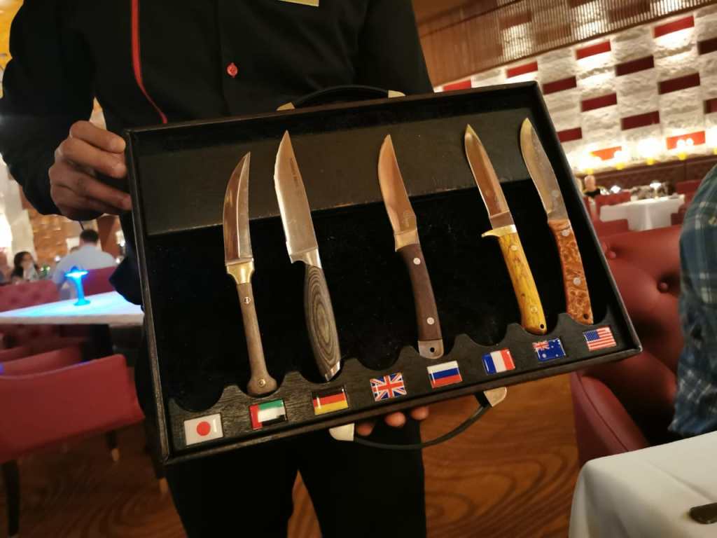 We got to choose our steak-knives from a box of very stylized weapons from a range of countries. I went for an Emirati knife that looked like a princely dagger.