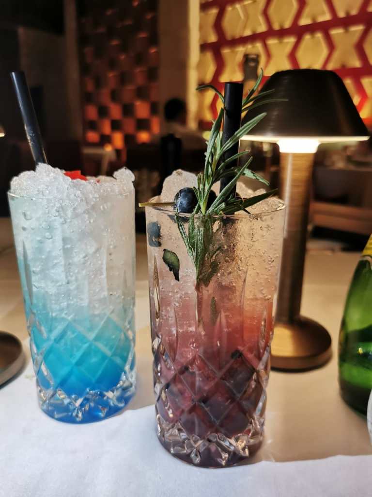 They also have a range of interesting mocktails. My daughter chose to try the Blueberry Fizz, and our friend had the Cobalt, a bright blue concoction.