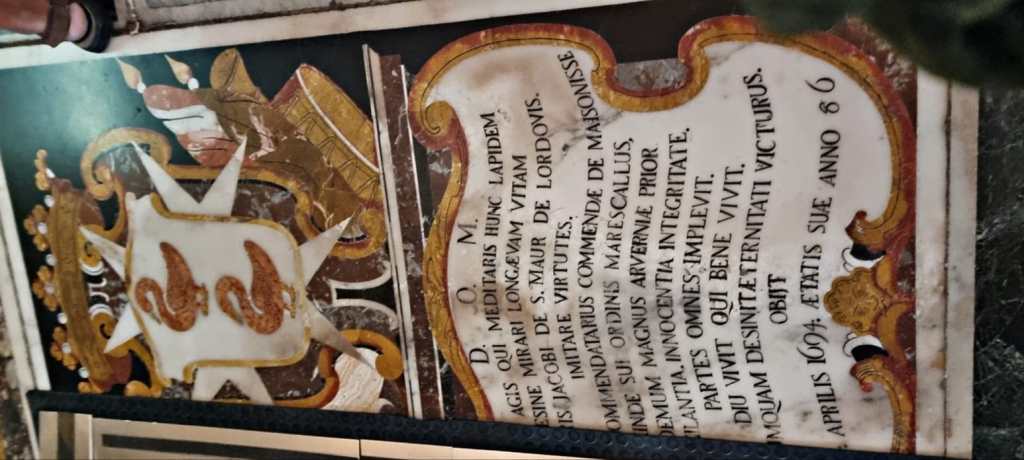 Each tombstone is inlaid in marble, marking the resting place of a Knight of the Order of St. John. These tombstones are works of art, each individually decorated with skulls, hourglasses, swords, and coats of arms, symbolizing mortality and military honor.